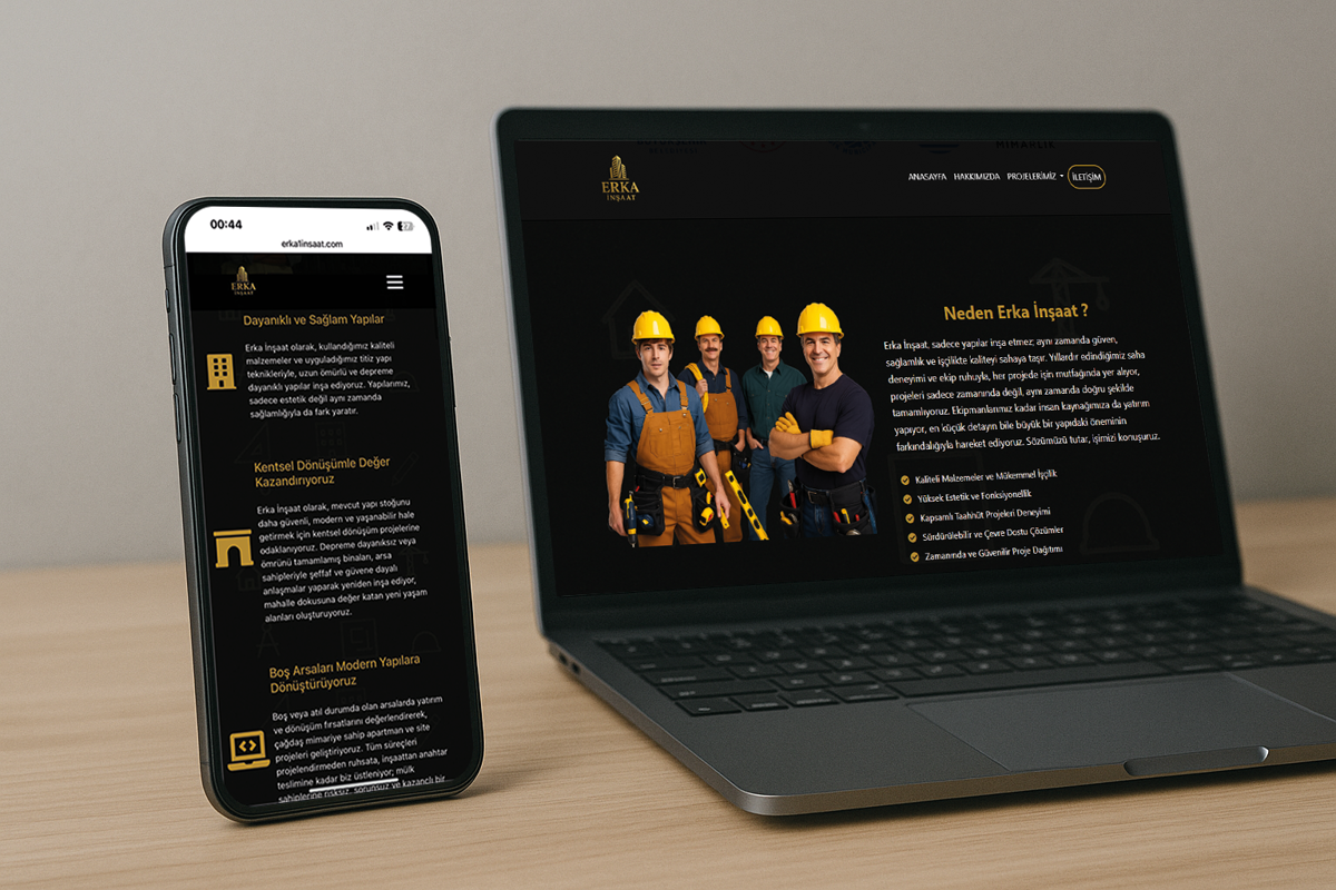 Erka İnşaat için geliştirilen kurumsal web sitesi, firmanın tamamladığı ve devam eden inşaat projelerini modern bir arayüzle tanıtmaktadır. Ziyaretçiler, projeler hakkında detaylı bilgilere ulaşabilir, görsel galerileri inceleyebilir ve firma ile kolayca iletişime geçebilir. SEO çalışmaları ile desteklenen site, sektörde daha geniş kitlelere erişim sağlamaktadır.