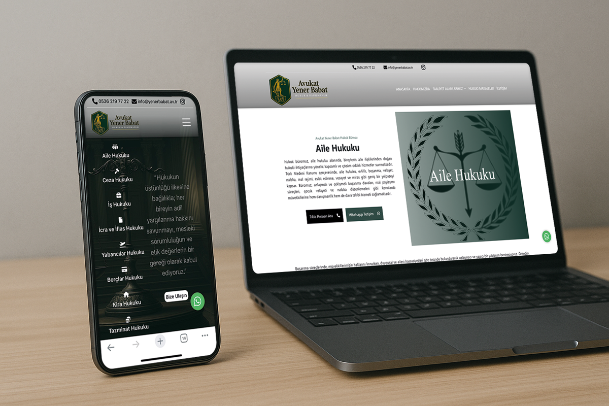 Avukat Yener Babat için geliştirilen kurumsal web sitesi, hukuk alanındaki hizmetlerin profesyonel bir şekilde tanıtıldığı, danışanların kolayca iletişim kurabildiği modern ve kullanıcı dostu bir platformdur. SEO çalışmalarıyla desteklenen site, hem yerel hem de ulusal ölçekte daha fazla kişiye ulaşmayı sağlamaktadır.