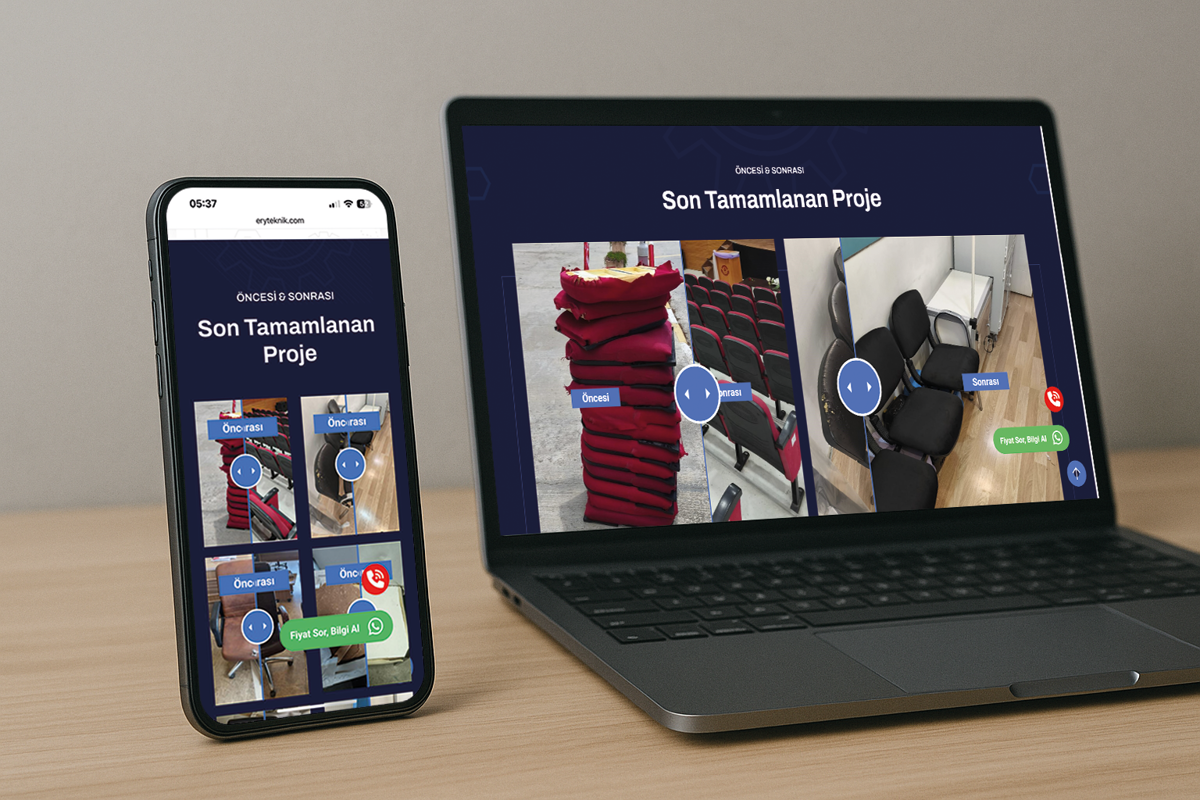 Responsive tasarım: Mobil, tablet ve bilgisayar uyumlu olarak hazırlanmış, sade ve modern arayüz tasarımıyla tüm cihazlarda kullanıcı dostu bir deneyim sunar.