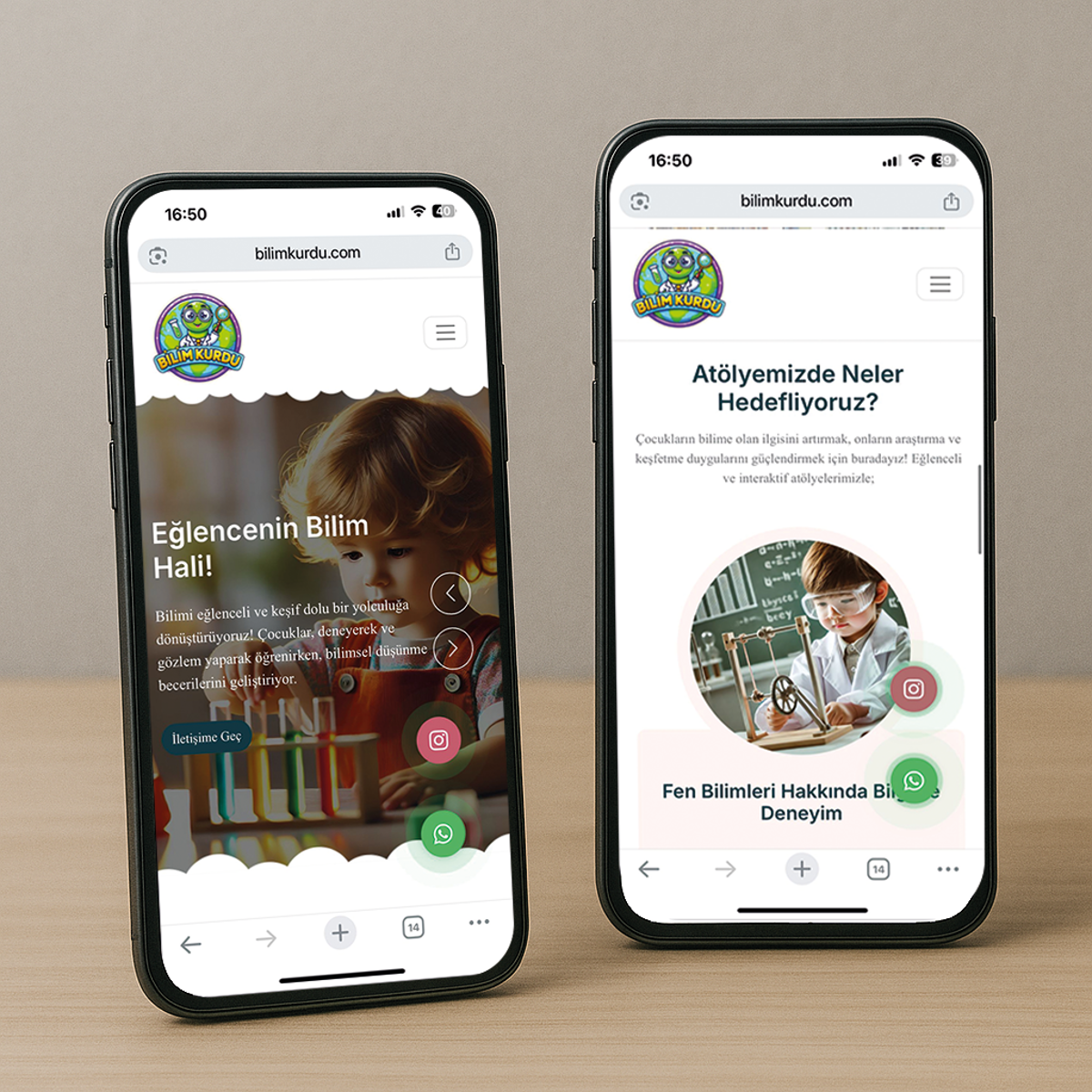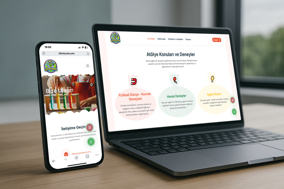 Bilim Kurdu için geliştirilen web sitesi, çocuklara yönelik bilim atölyeleri, deneyler ve etkinliklerin tanıtıldığı, modern ve etkileşimli bir platformdur. Velilerin etkinliklere kayıt yapabildiği ve duyuruların yönetilebildiği sistem aynı zamanda SEO çalışmalarıyla daha geniş kitlelere ulaşmayı hedeflemektedir.